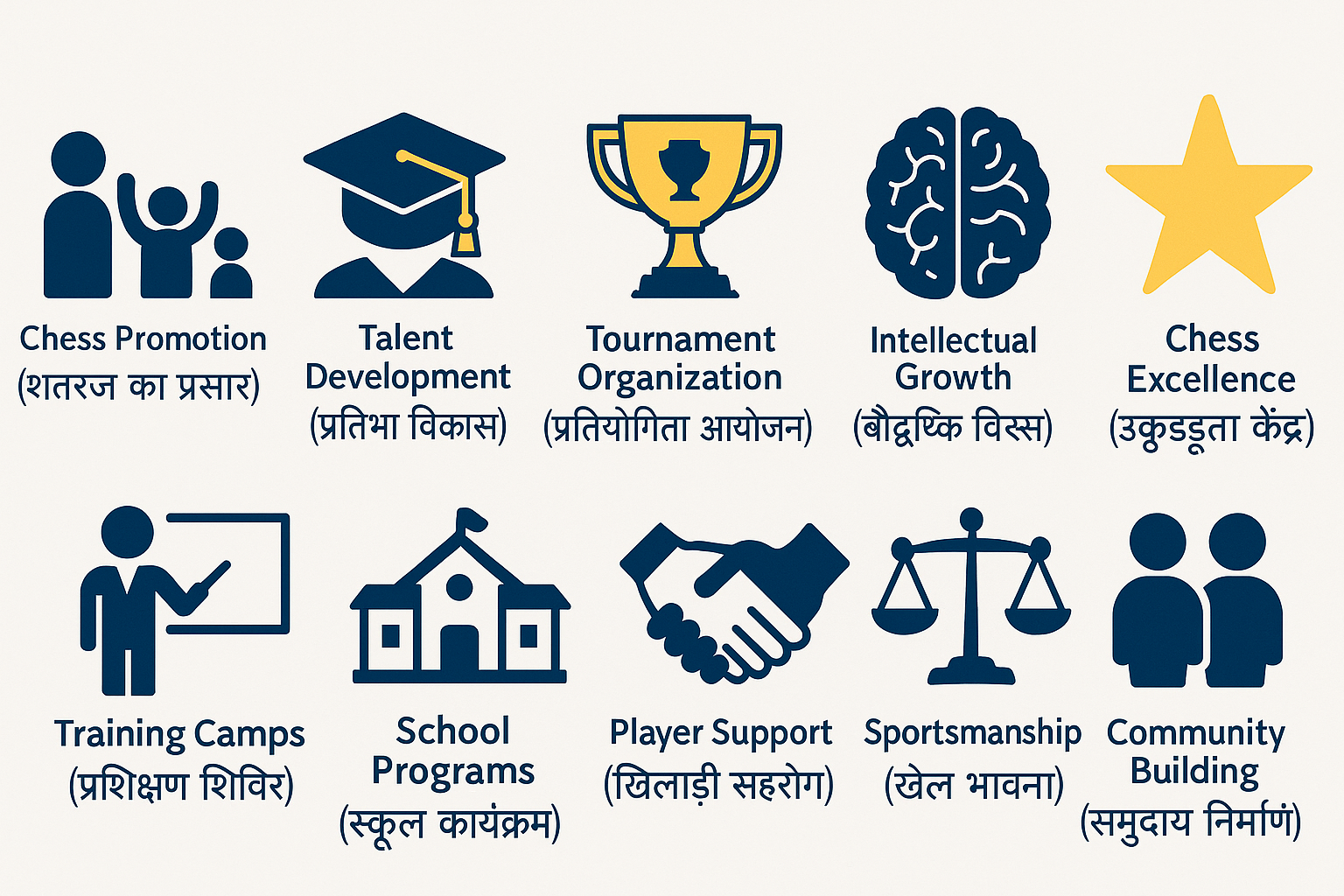 Through chess, the association focuses on developing logical reasoning, patience, problem-solving, and concentration among individuals. Chess is promoted as a tool for holistic intellectual and personality growth